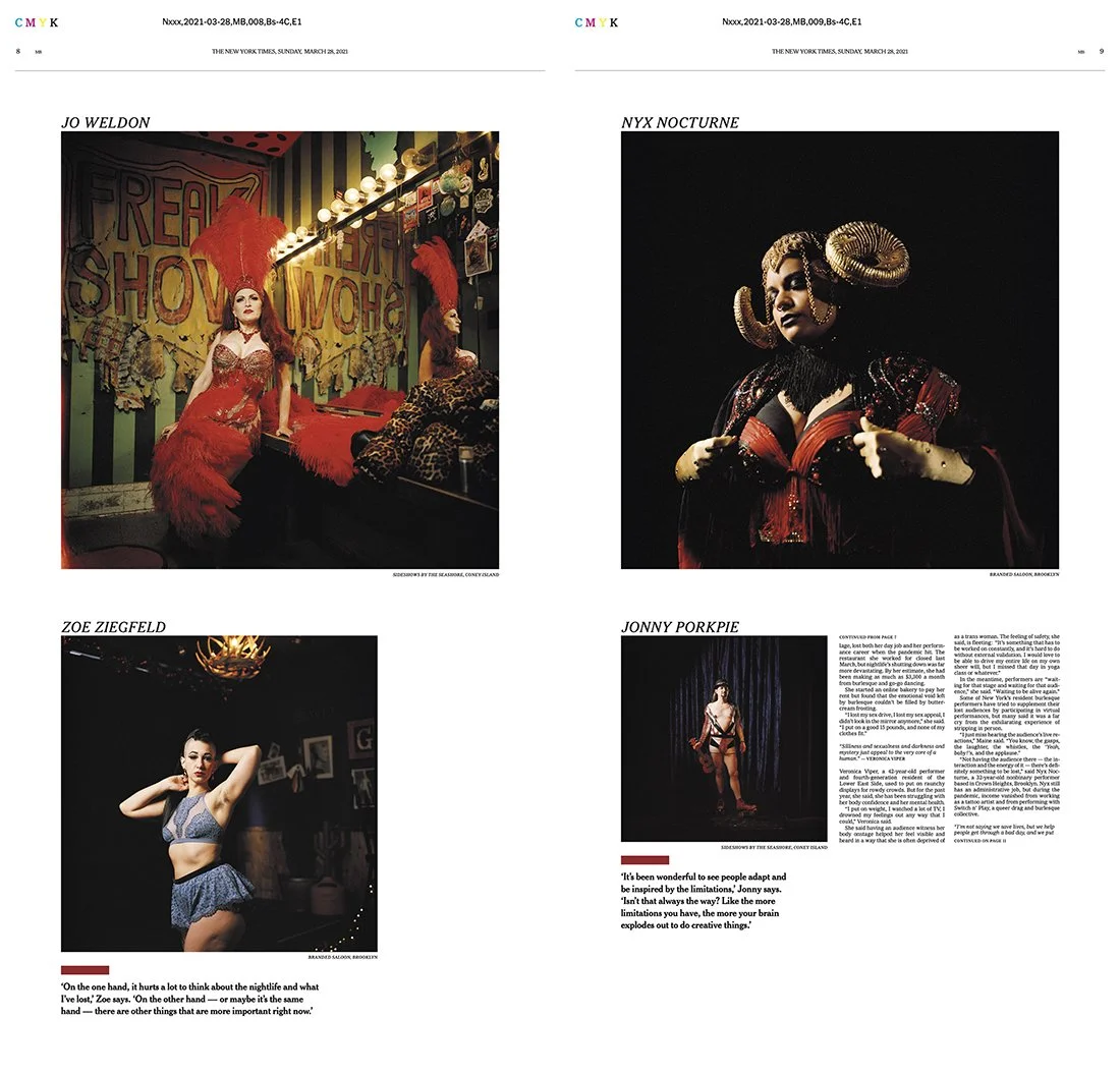 I pitched this personal project to The New York Times because I wanted to explore the financial and psychological impact the Covid-19 pandemic was having on the city’s burlesque performers, many of whom I consider friends. Julia Carmel reported the piece with me.